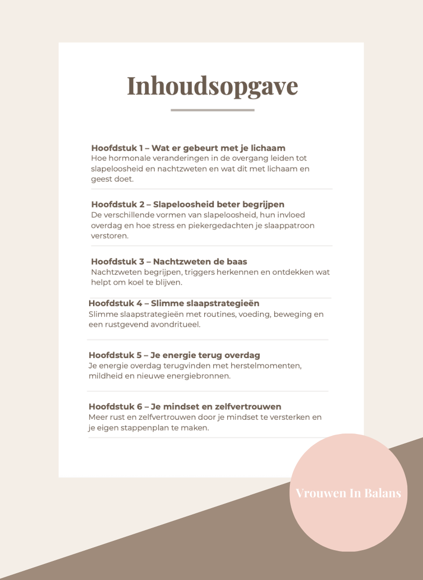 Dit e-book is bedoeld voor vrouwen die niet alleen beter willen slapen, maar ook meer begrip, rust en regie willen ervaren in deze levensfase.